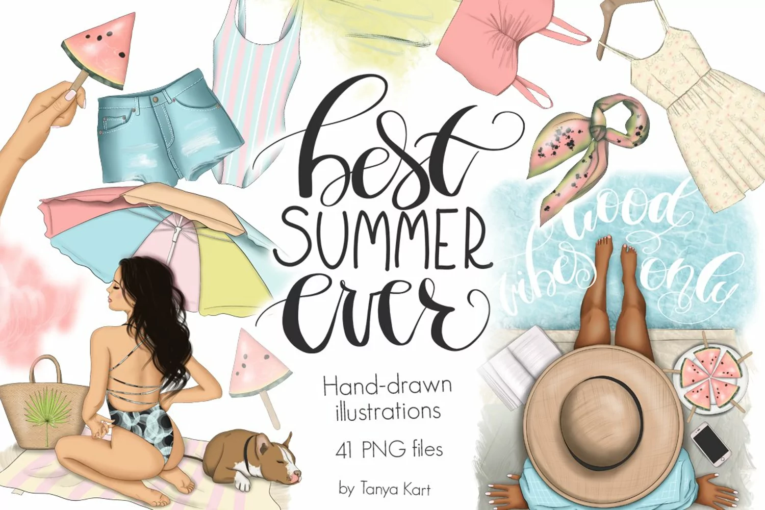Best Summer Ever Clipart Graphic Design Kit Illustrations And Seamless Patterns