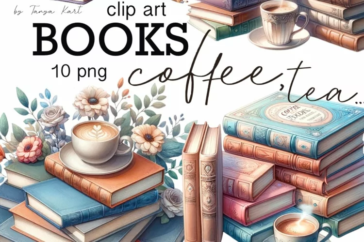 Watercolor Clipart Floral Clipart Instant Download Clipart Bundle Flowers Clipart Coffee Clipart Coffee Cup Clipart Books Clipart Commercial Use Png Coffee And Books
