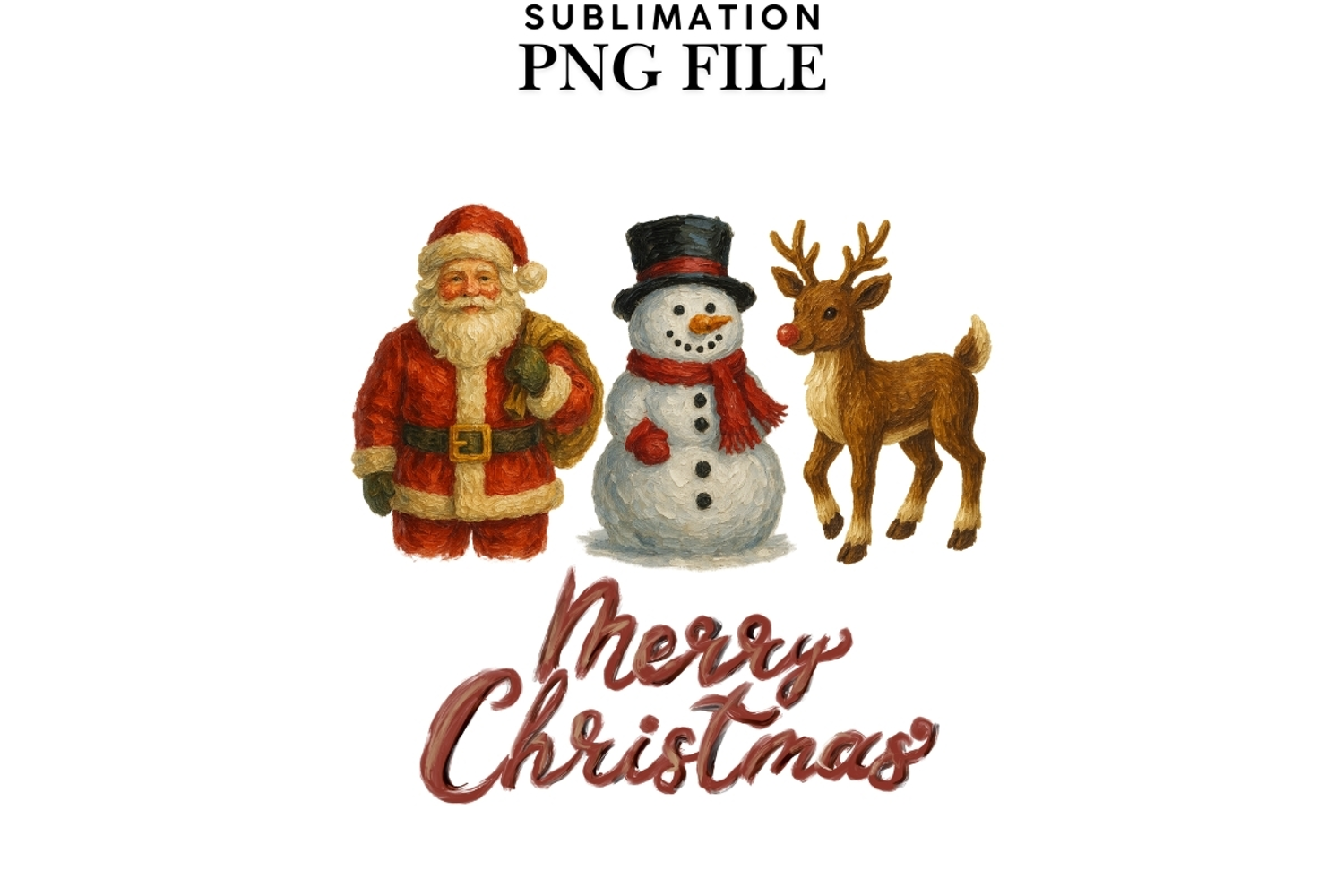 Christmas Digital Prints Graphic Illustration Fashion Illustration Digital Illustration Sublimation Design Christmas Trio Png For Printing Png Digital Download Oil Painted