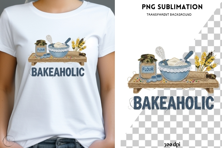 Bakeaholic PNG | Funny Baking Lover Shirt Design example image 1