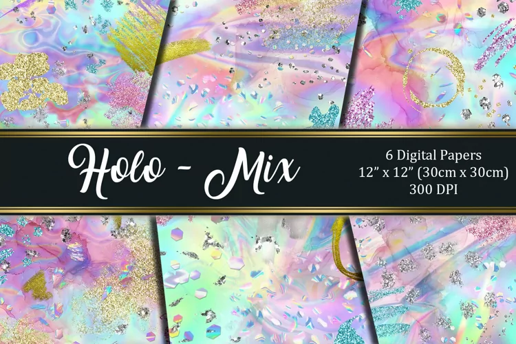 The HOLO MIX digital collection is a beautiful paper pack inspired with alcohol ink, hologram and glitter.