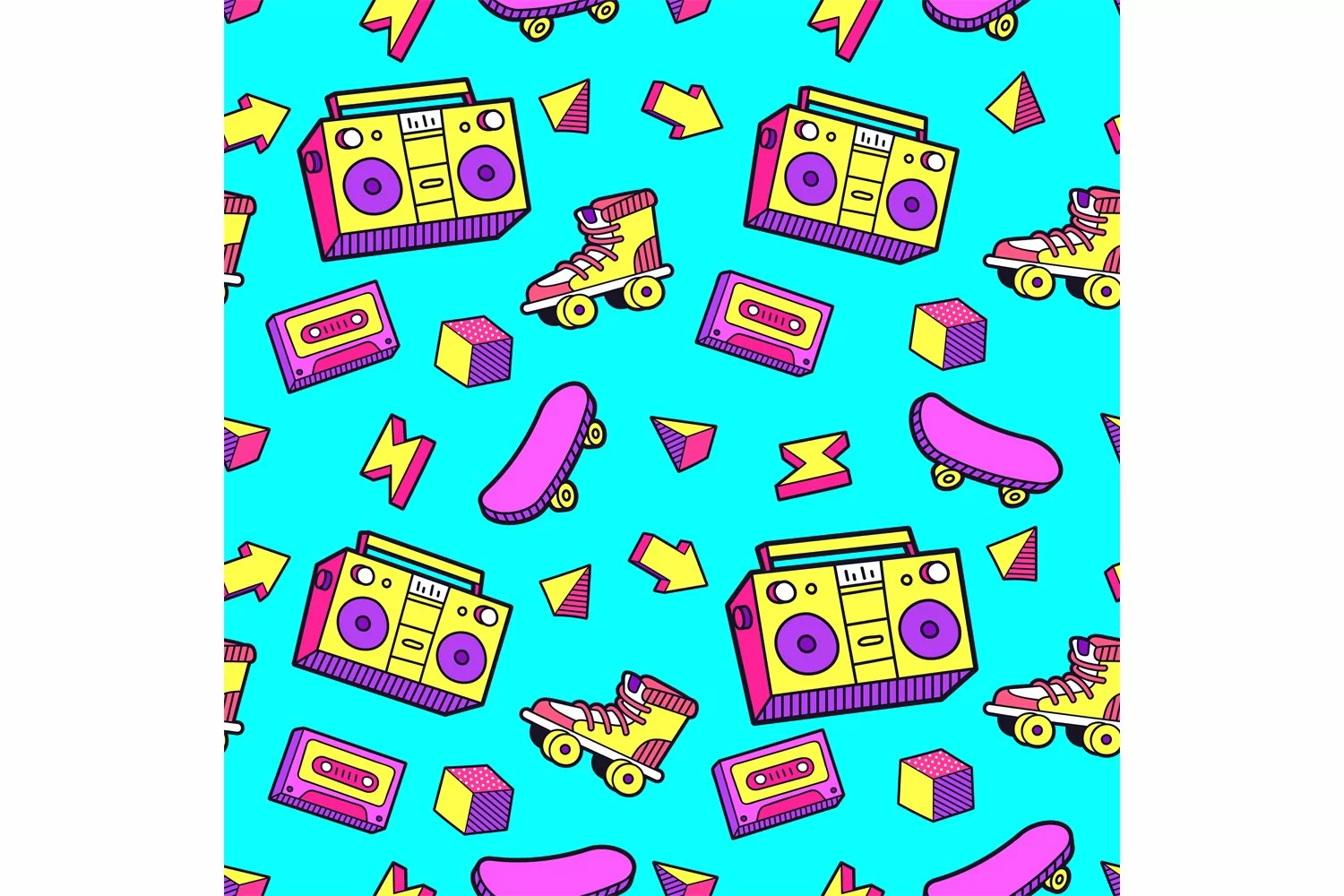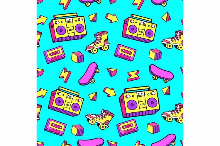 Retro Funky Svg 80s Skateboard 90s Pop Seamless Pattern Roller Skates Boombox