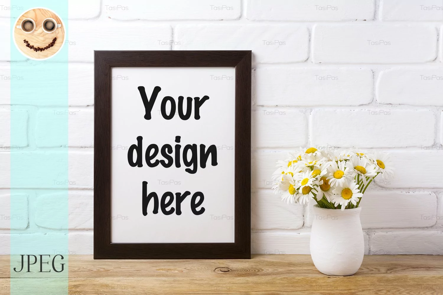 Similar Design Products to Black brown frame mockup with chamomile bouquet in vase