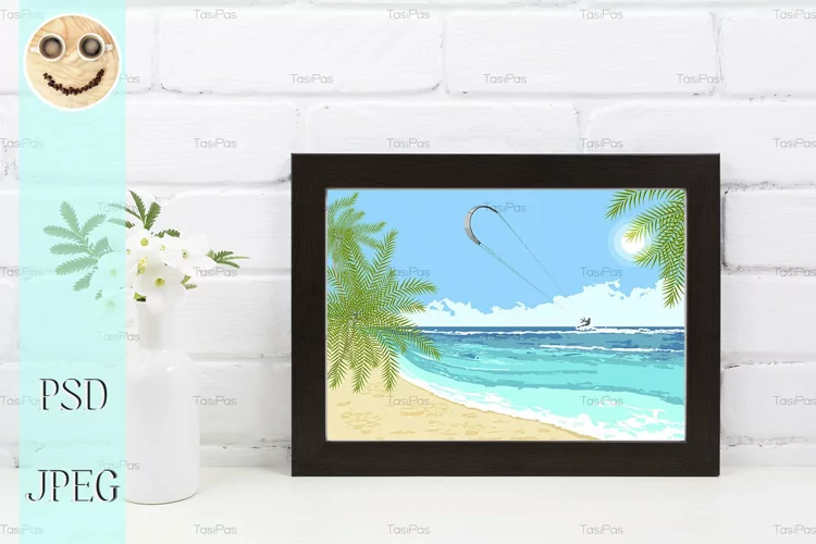 Black brown landscape frame mockup with Tobacco flowers.