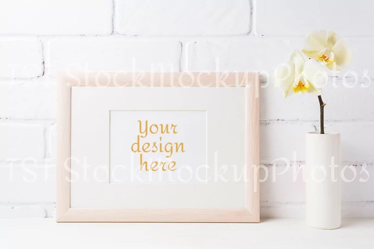 Similar Design Products to Wooden landscape frame mockup with soft yellow orchid