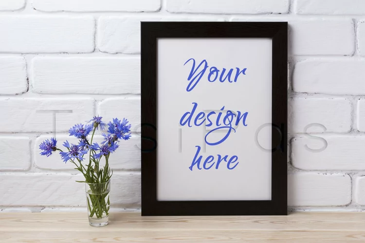 Black brown poster frame mockup with cornflower example image 1