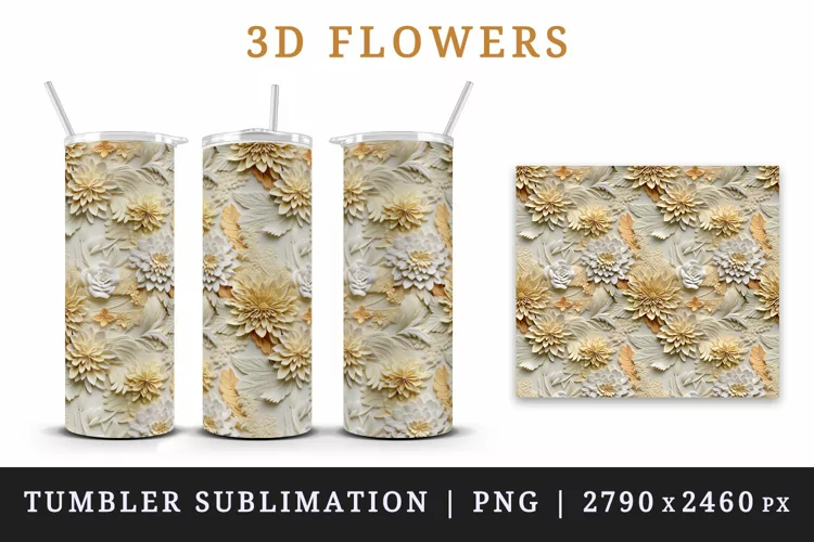 3d Flowers Seamless Tumbler Design Png 3d Tumbler Wrap 20oz Or 20 Oz Straight 3d Floral Tumbler Flowers Pattern And Floral Arrangement Summer Tumbler Skinny Wrap Sublimation Print Paper Quilling Or Modeling Paste Floral Tumbler Skinny Printable Sublimation Tumbler