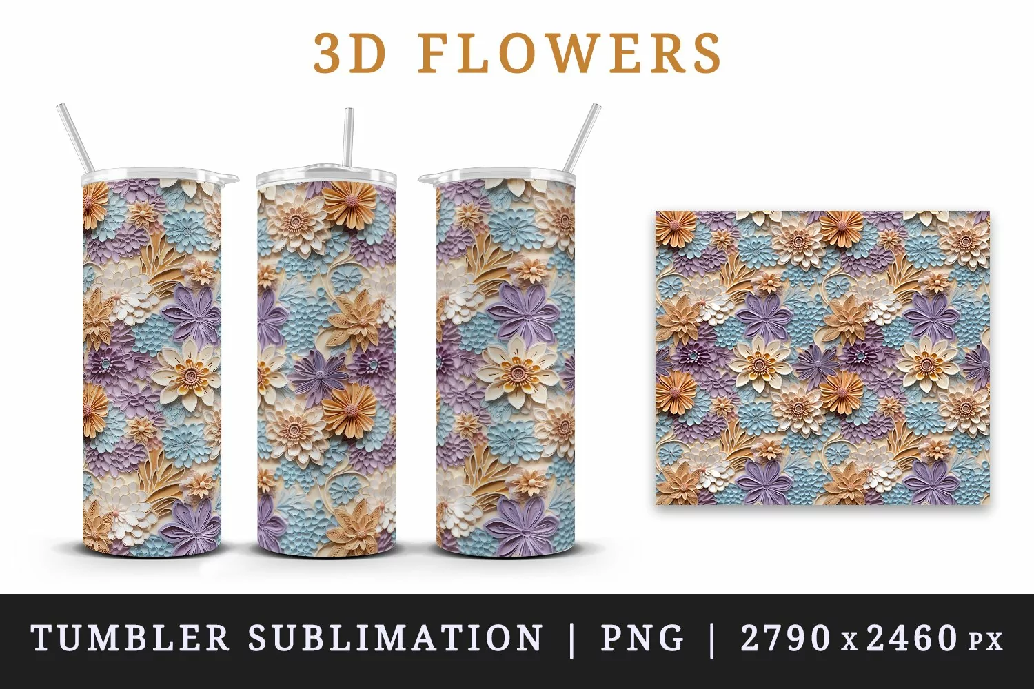 3d Flowers Seamless Tumbler Design Png 3d Tumbler Wrap 20oz Or 20 Oz Straight 3d Floral Tumbler Flowers Pattern And Floral Arrangement Summer Tumbler Skinny Wrap Sublimation Print Paper Quilling Or Modeling Paste Floral Tumbler Skinny Printable Sublimation Tumbler