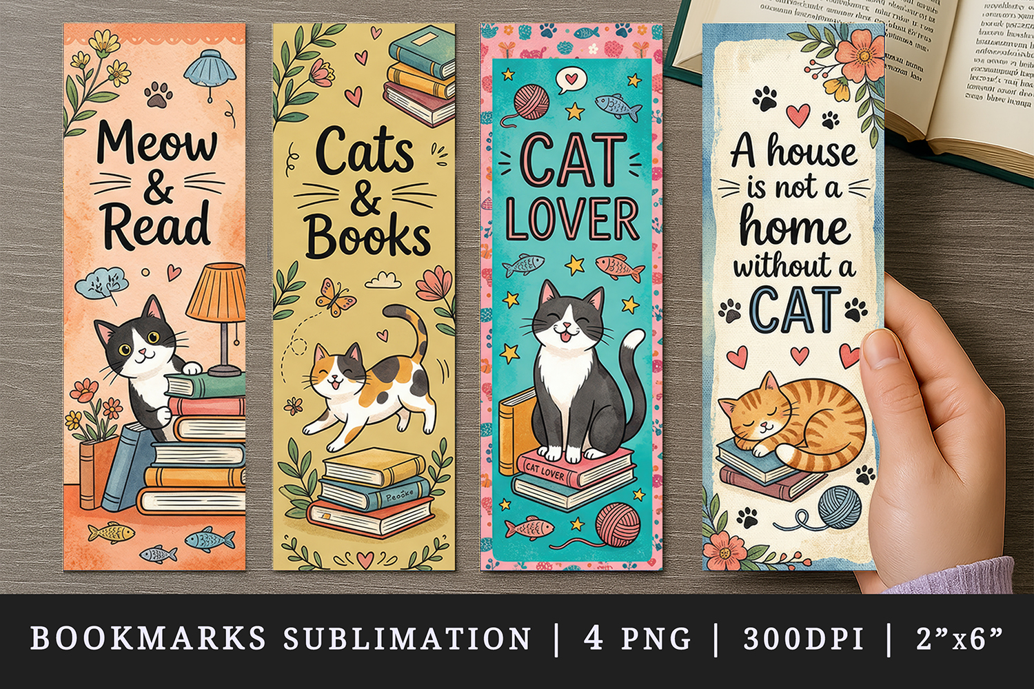 Cat lover bookmarks printable sublimation bookmark design example image 1