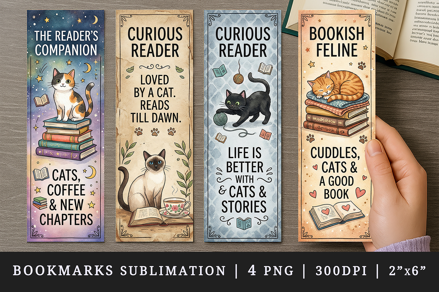Cat lover bookmarks printable sublimation bookmark design example image 1