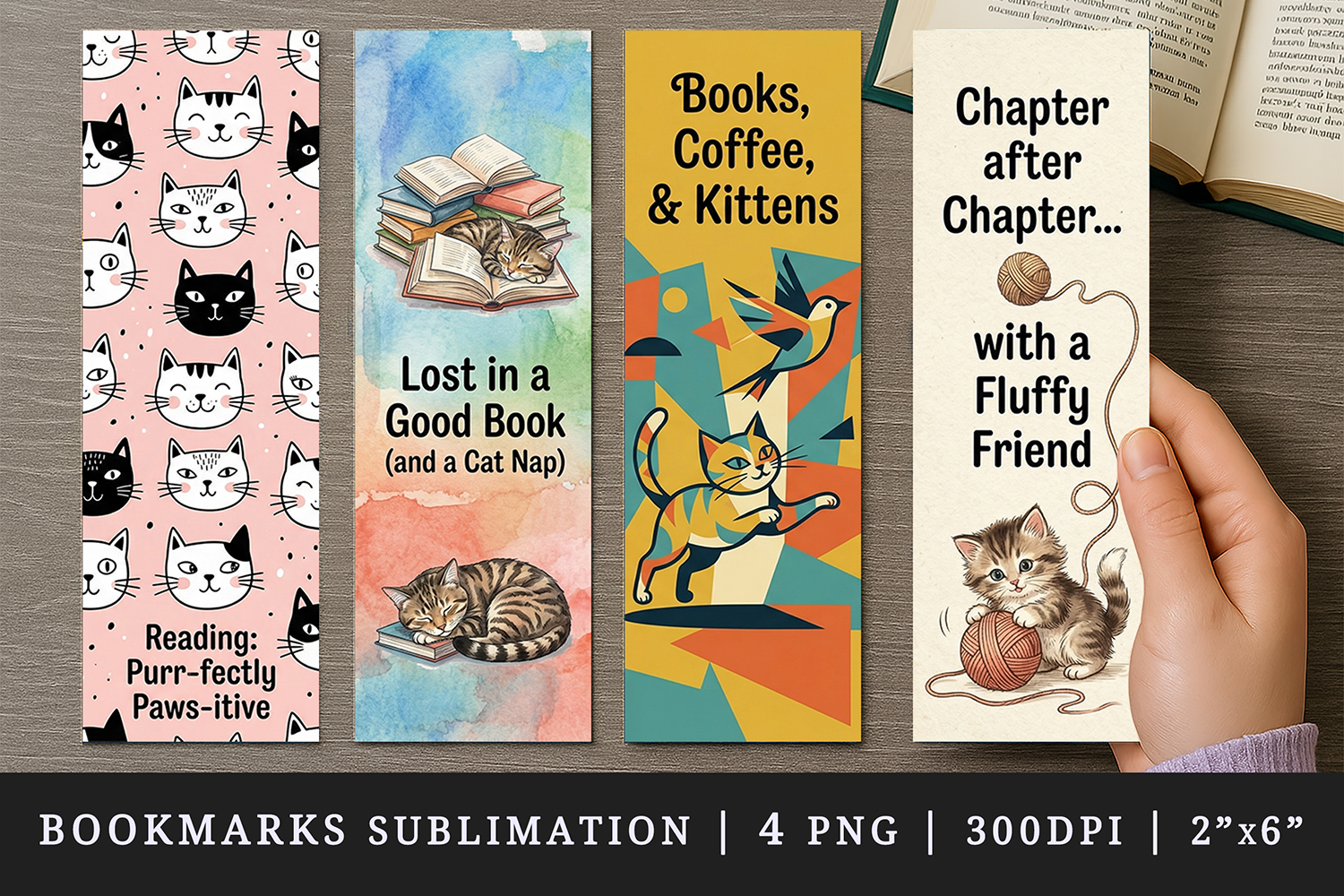Cat lover bookmarks printable sublimation bookmark design example image 1