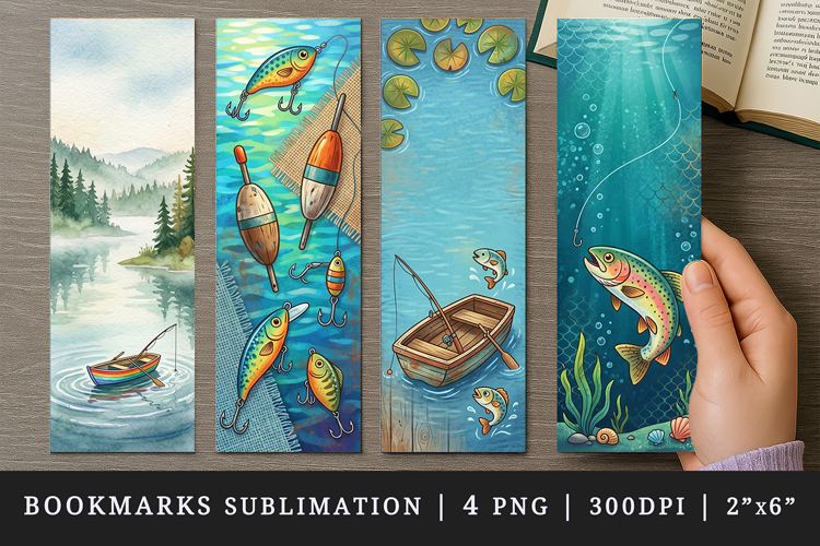 Fishing bookmarks printable sublimation bookmark design example image 1