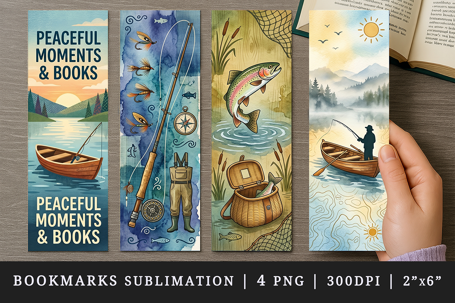 Bookmark Printable Sublimation Design Cute Template Illustration Graduation Gift For Book Lover Read Bookmarks Print Fishing Peaceful Fly Rainbow Moments Trout Fisherman Books Rod Fish Rowboat Reading Reel Jumping Boat Poster Flies Leaping Banner Artificial Creel Lake Vertical Waders Wicker Misty Retro Chest Mist Vintage Gear Basket Mountains