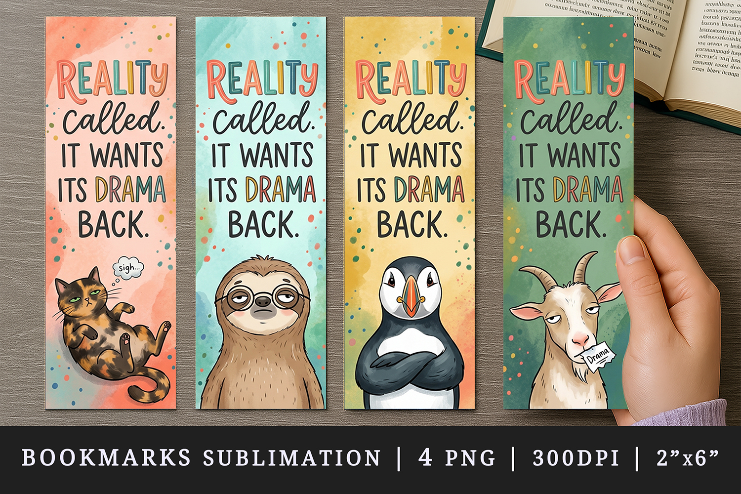 Bookmark Printable Sublimation Design Cute Template Illustration Graduation Gift For Book Lover Read Bookmarks Print Sarcastic Quote Cat Sloth Funny Calico Glasses Wall Goat Lounging Art Poster Grumpy Sleepy Humorous Animal Reality Cartoon Called Drawing Puffin Bird Seabird It Wants Typography Its Hand Whimsical Drama Lettered Back Playful Colorful