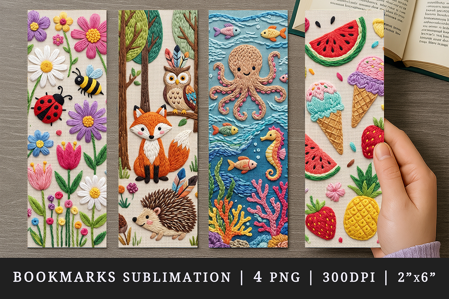 Bookmark Printable Sublimation Design Cute Template Illustration Graduation Gift For Book Lover Read Bookmarks Print Embroidery Embroidered Fox Octopus Flowers Needlework Floral Owl Art Needlepoint Hand Hedgehog Seahorse Fruit Woodland Fish Ice Bee Forest Sea Cream Ladybug Life Cone Daisies Ocean Watermelon Tulips Hoop Underwater Strawberry