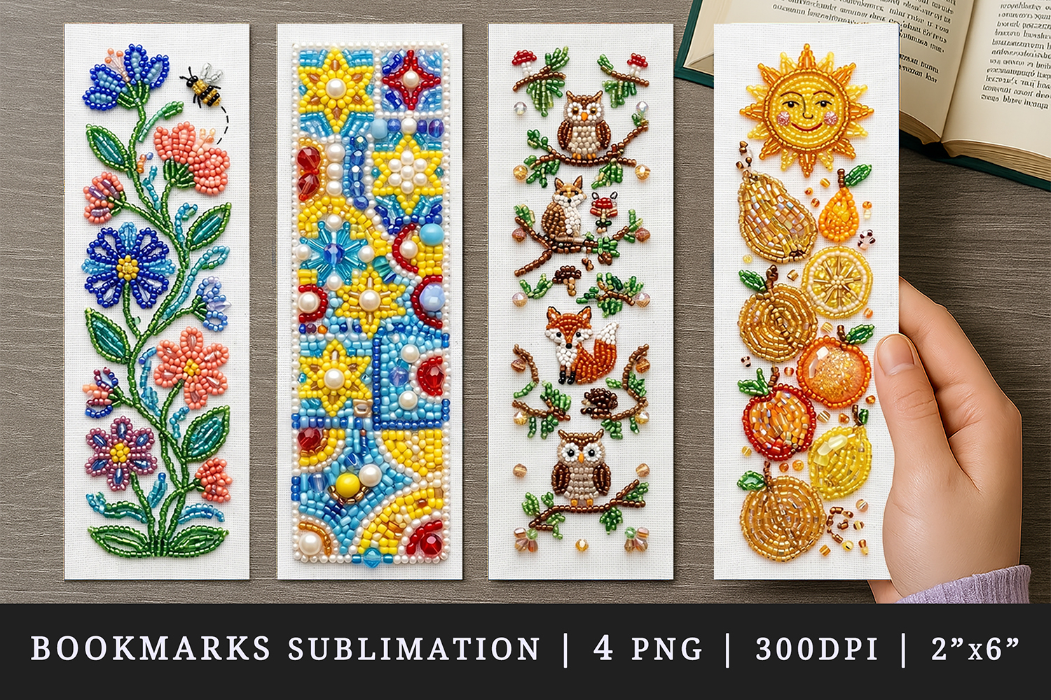 Beaded embroidery printable sublimation bookmark design