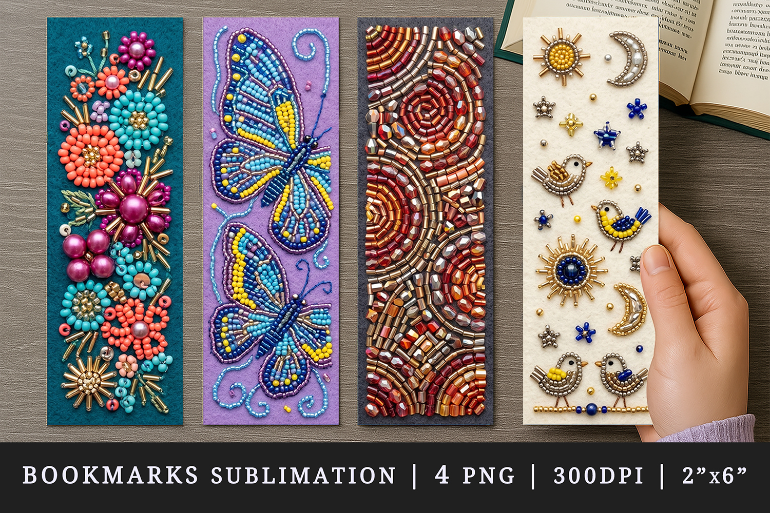 Beaded embroidery printable sublimation bookmark design