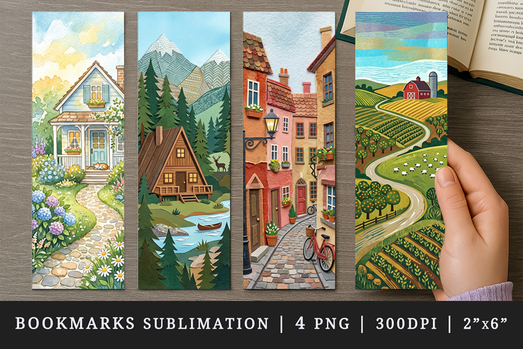 Bookmark Printable Sublimation Design Cute Template Illustration Graduation Gift For Book Lover Read Bookmarks Print Home Cottage Cabin Cobblestone Farm Watercolor Frame Street Farmland Watercolour Wooden Colorful Countryside Country Log Houses Rural Garden Cozy European Landscape Path Quaint Stone Riverside Alley Road Pathway Lake Narrow Winding Woods