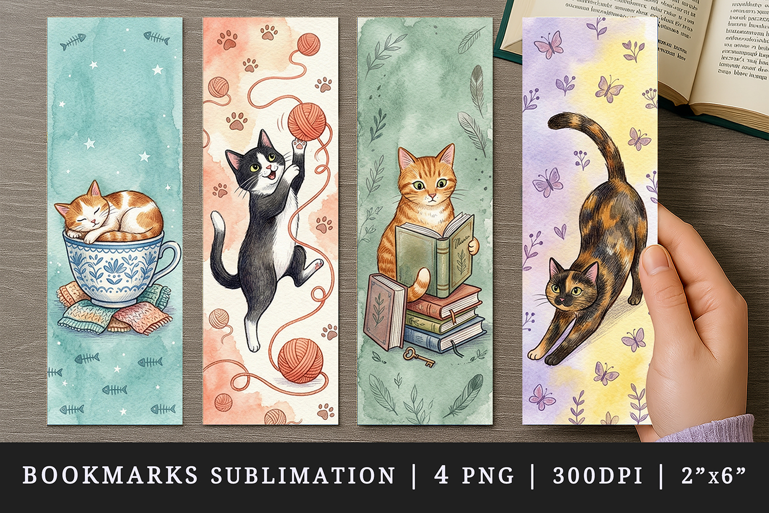 Cat lover bookmarks printable sublimation bookmark design example image 1