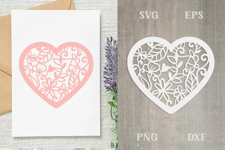 Floral heart is in EPS, SVG, PNG and DXF formats.
