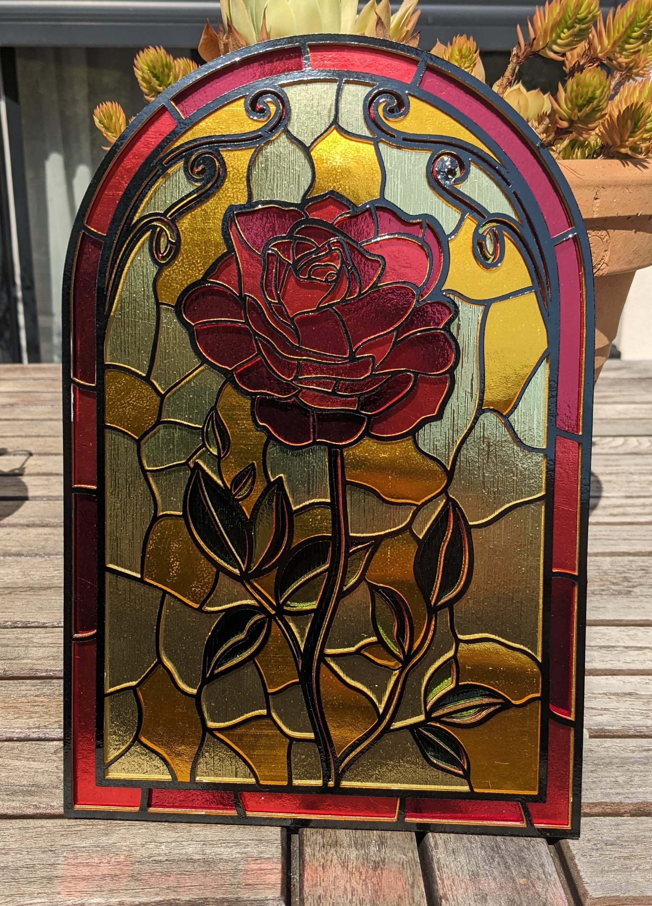 Each stained glass item has 6, 7 or 8 layers and can be used on cards, as a gift or for home decorations and even as a stained glass template.