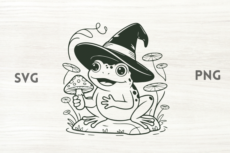 Witch frog fungi SVG is a design perfect for Halloween and spooky crafts. Use it on shirts, hoodies, tote bags, cards or any witchy project.
