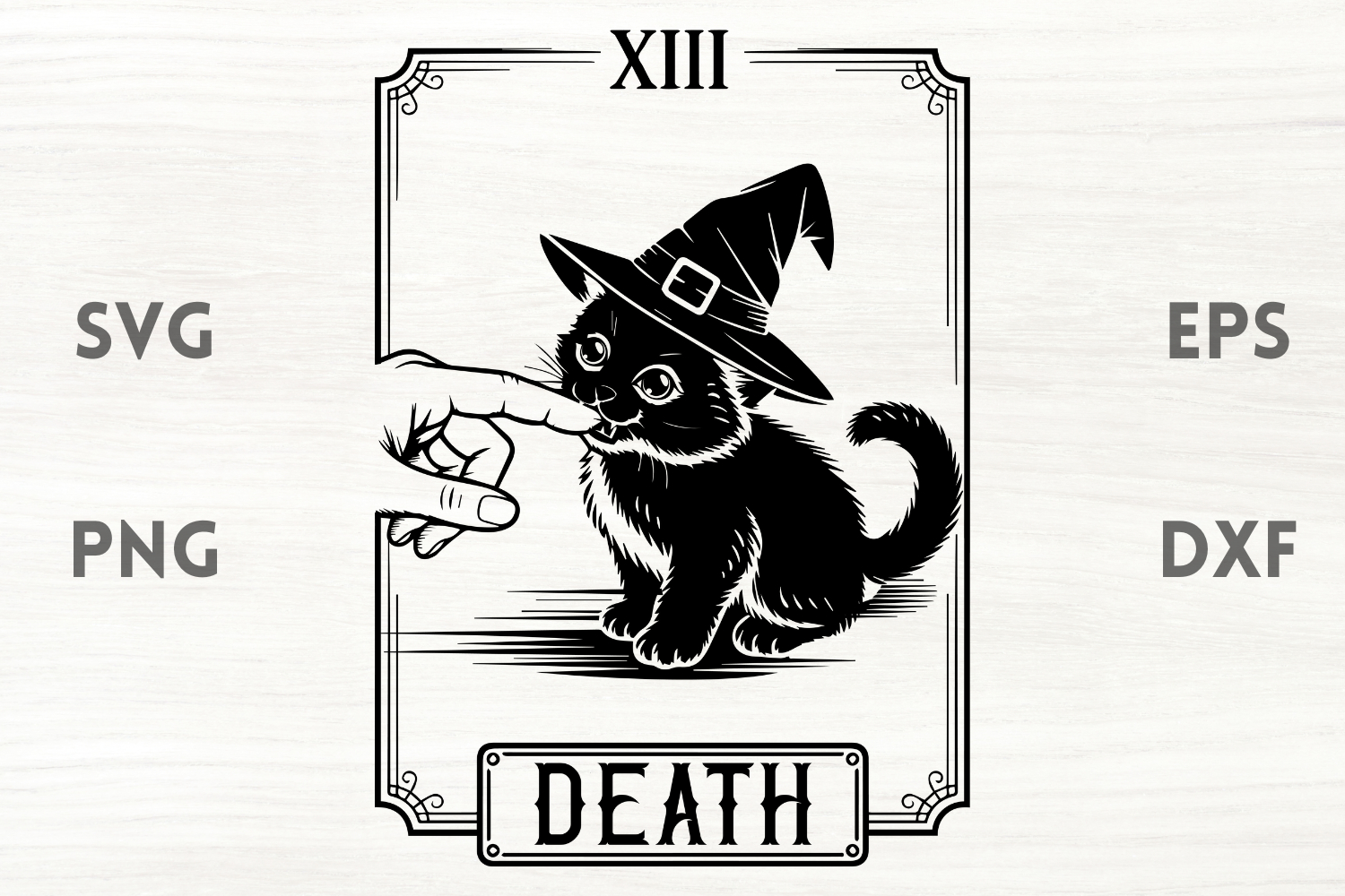 Death Cat Tarot Card Witchy Hat SVG example image 1