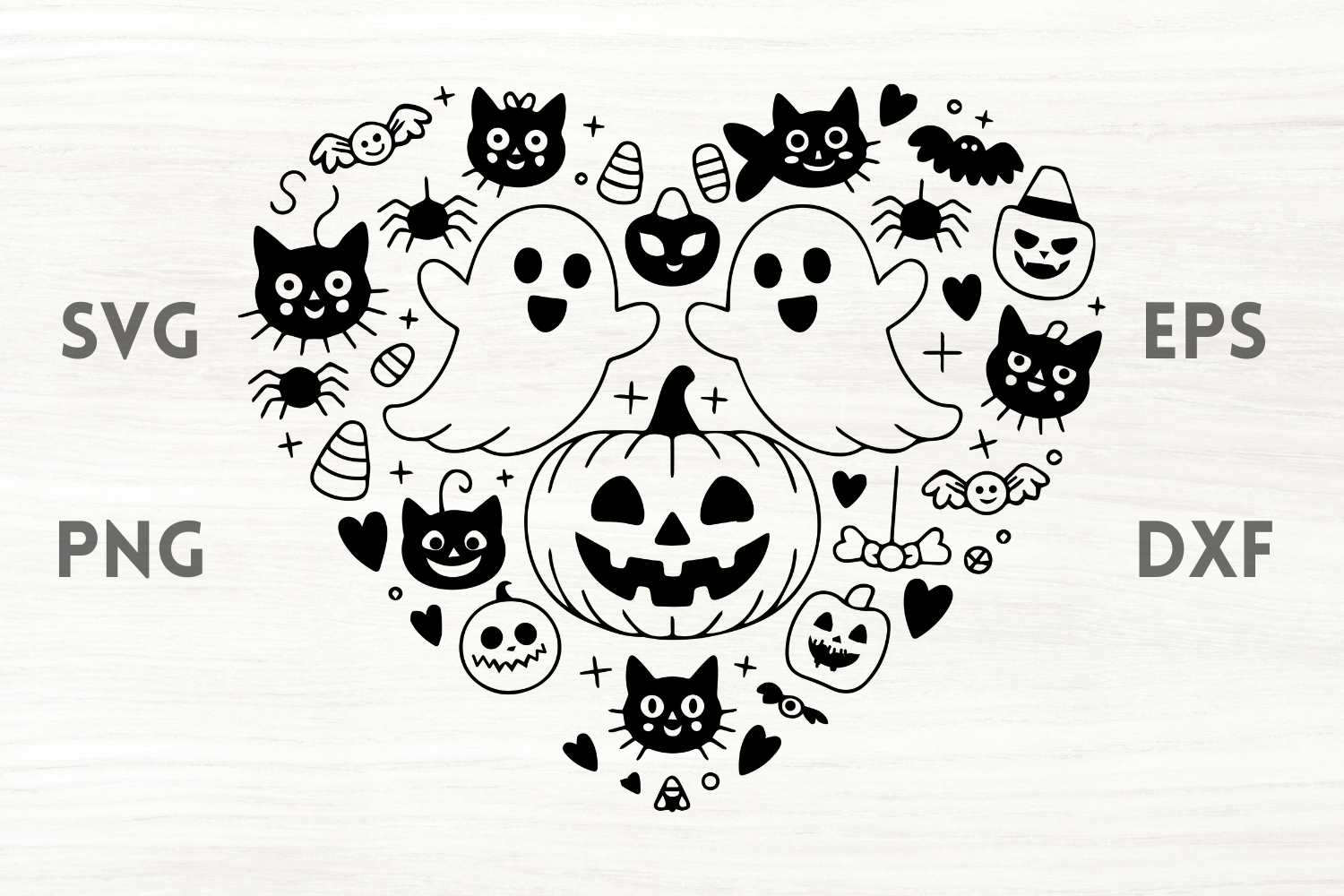 Halloween Heart SVG - Cats Hearts and Ghosts example image 1