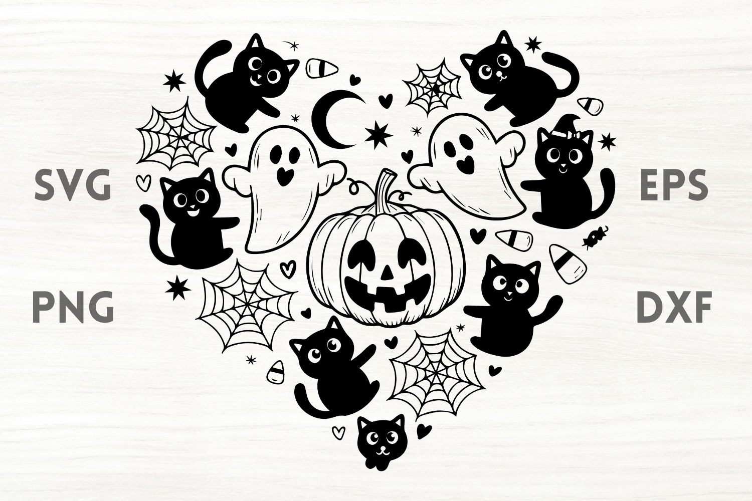 Happy Halloween Party Heart black cats SVG is a design perfect for Halloween and spooky crafts. Use it porch decorations, laser cut designs, shirts, hoodies, tote bags, cards or any Halloween decoration