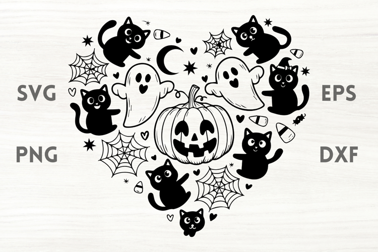 Happy Halloween Party Heart black cats SVG in EPS, SVG, DXF & PNG format. The cutting points were reduced to a minimum, so the cutting process will be a lot faster.