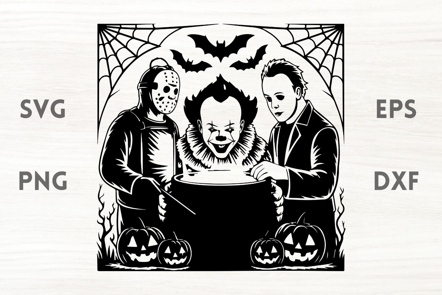 Halloween Villains SVG is a design perfect for Halloween and spooky crafts. Use it for signs, parties, laser cut designs, shirts, hoodies, tote bags, cards or any Halloween decoration