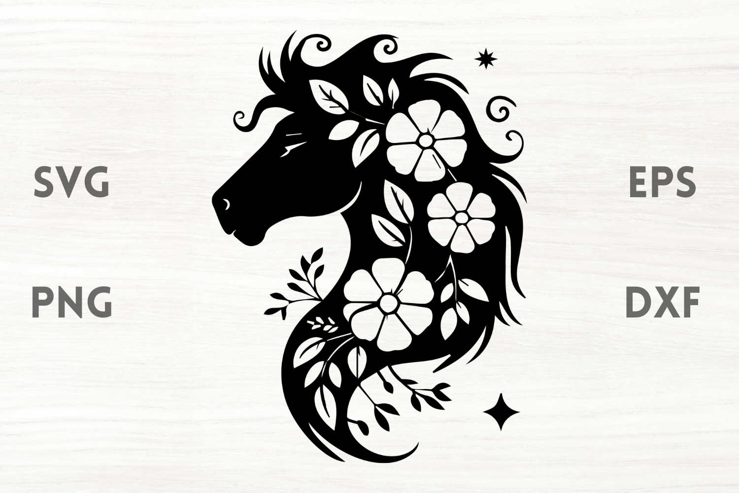 Floral horse SVG and star is in EPS, SVG, DXF & PNG formats. The cutting points were reduced to a minimum, so the cutting process will be a lot faster.