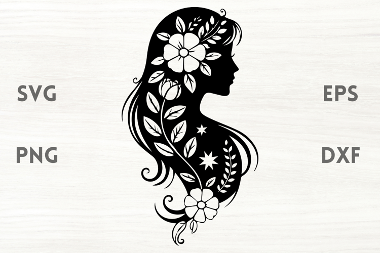 Floral Lady SVG is in EPS, SVG, DXF & PNG formats. The cutting points were reduced to a minimum, so the cutting process will be a lot faster.