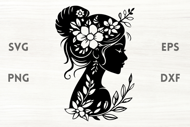 Floral Lady SVG is in EPS, SVG, DXF & PNG formats. The cutting points were reduced to a minimum, so the cutting process will be a lot faster.