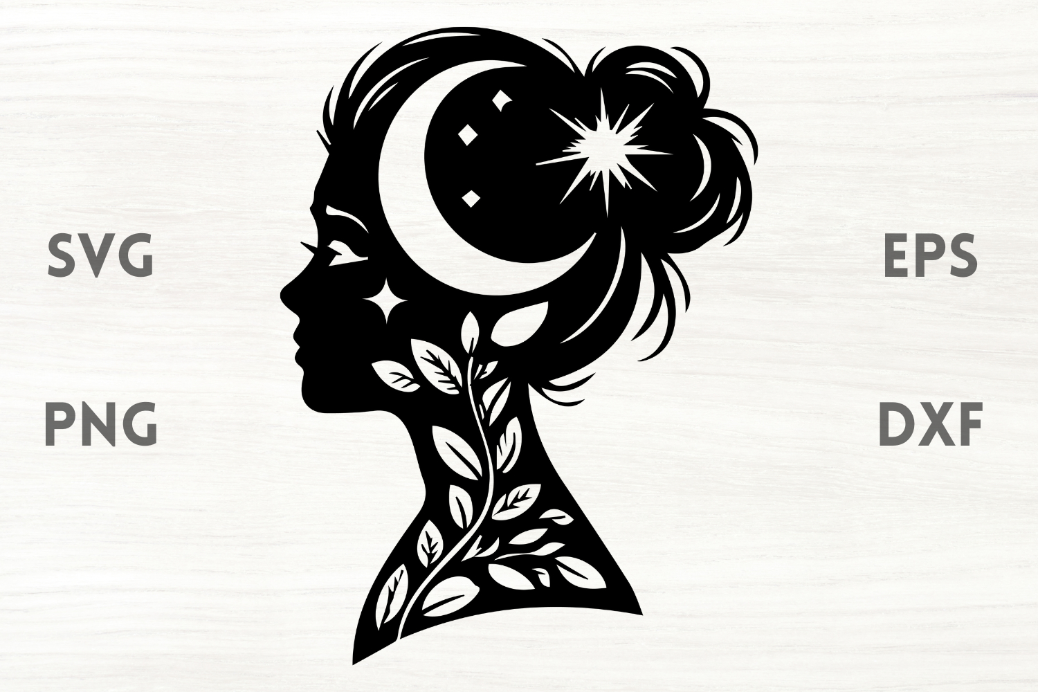 Moon Floral Lady SVG is a design perfect for Halloween and celestial/ witchy crafts. Use it decorations, laser cut designs, shirts, hoodies, tote bags, cards or any decoration
