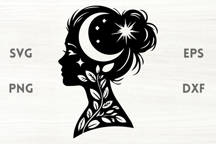 Moon Floral Lady is in EPS, SVG, DXF & PNG formats. The cutting points were reduced to a minimum, so the cutting process will be a lot faster.