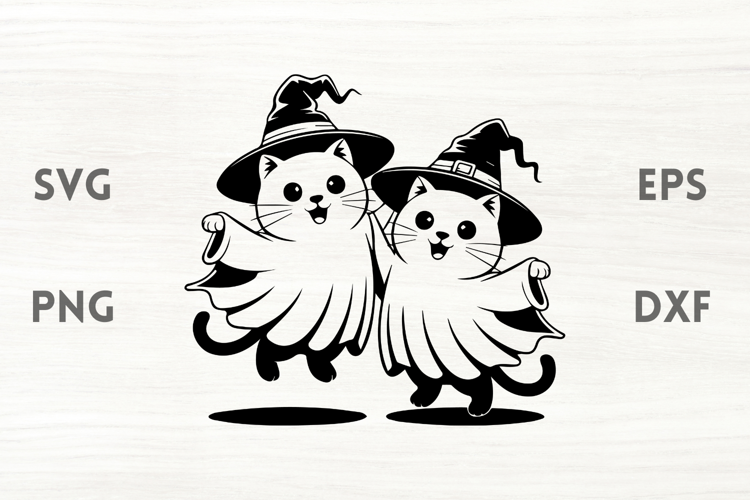 Happy Ghost witch Kittens is an whimsical Halloween SVG, perfect for laser cut designs, shirts, hoodies, tote bags, cards or any Halloween decoration
