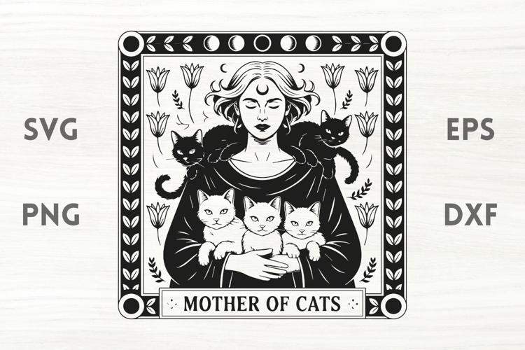 Powerful witch and cats with flowers is a design perfect for Halloween and spooky feminine crafts. Use it porch decorations, laser cut designs, shirts, hoodies, tote bags, cards or any Halloween decoration