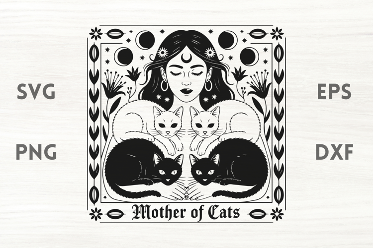 Witch and cats floral is a design perfect for Halloween and spooky feminine crafts. Use it porch decorations, laser cut designs, shirts, hoodies, tote bags, cards or any Halloween decoration