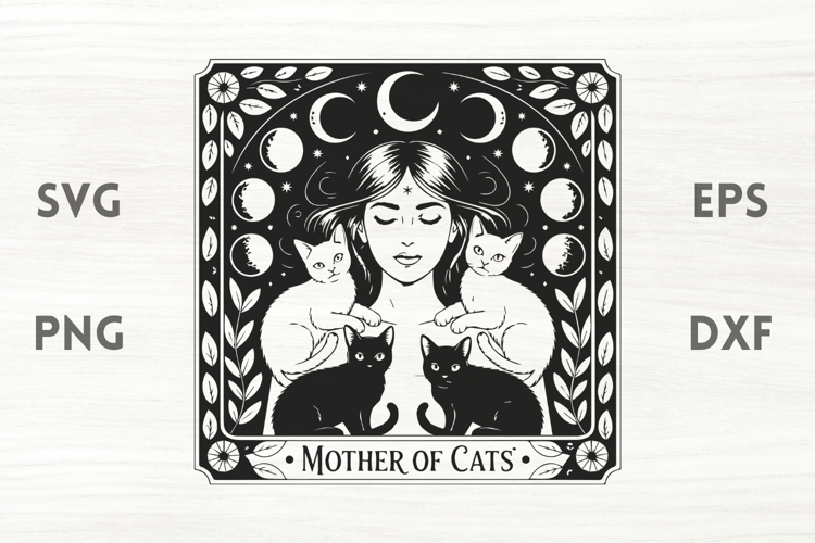 Witch and cats moon phases is a design perfect for Halloween and spooky feminine crafts. Use it porch decorations, laser cut designs, shirts, hoodies, tote bags, cards or any Halloween decoration
