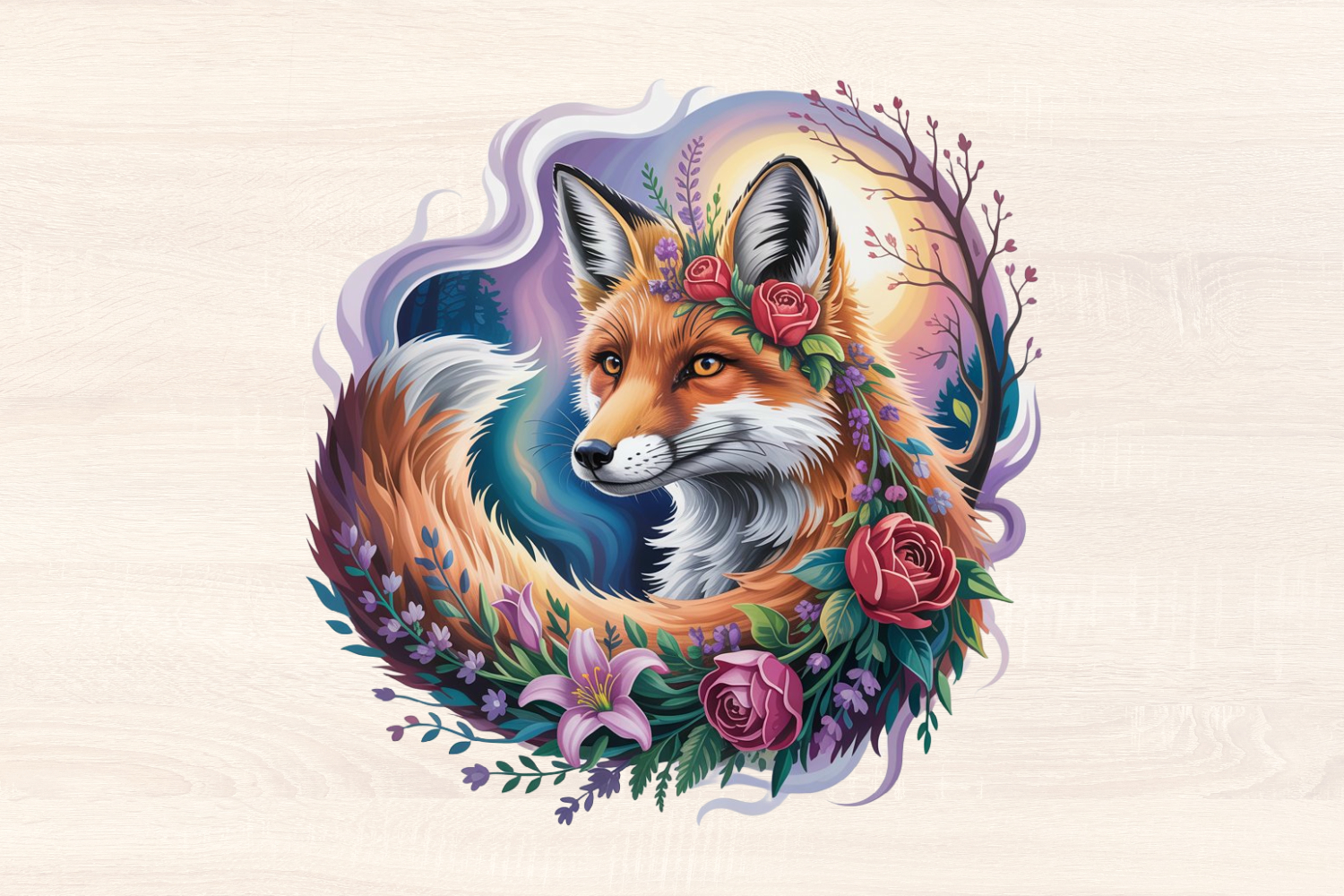 Rose Branch and Fox and Moon PNG Sublimation example image 1