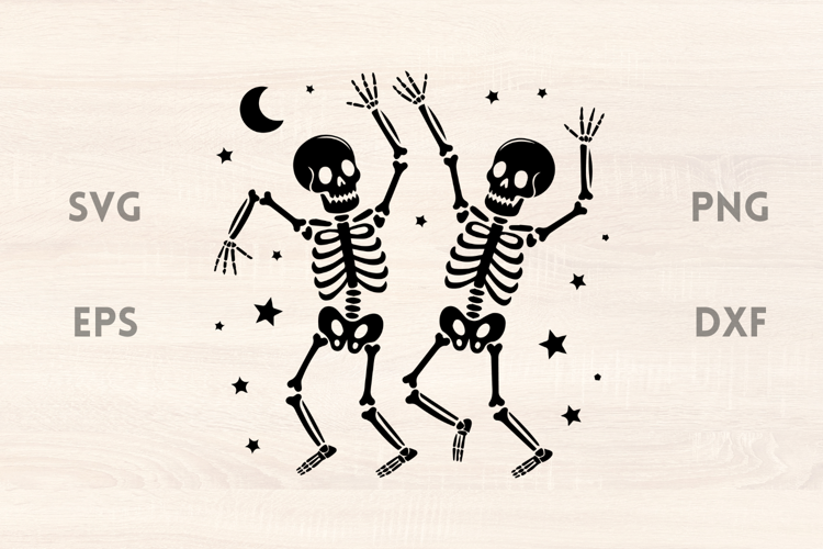 Halloween Party Party Svg Moon Svg Skeleton Svg Cute Halloween Svg Cute Character Moon And Stars Dancing Skeletons Svg Skeleton Party Svg