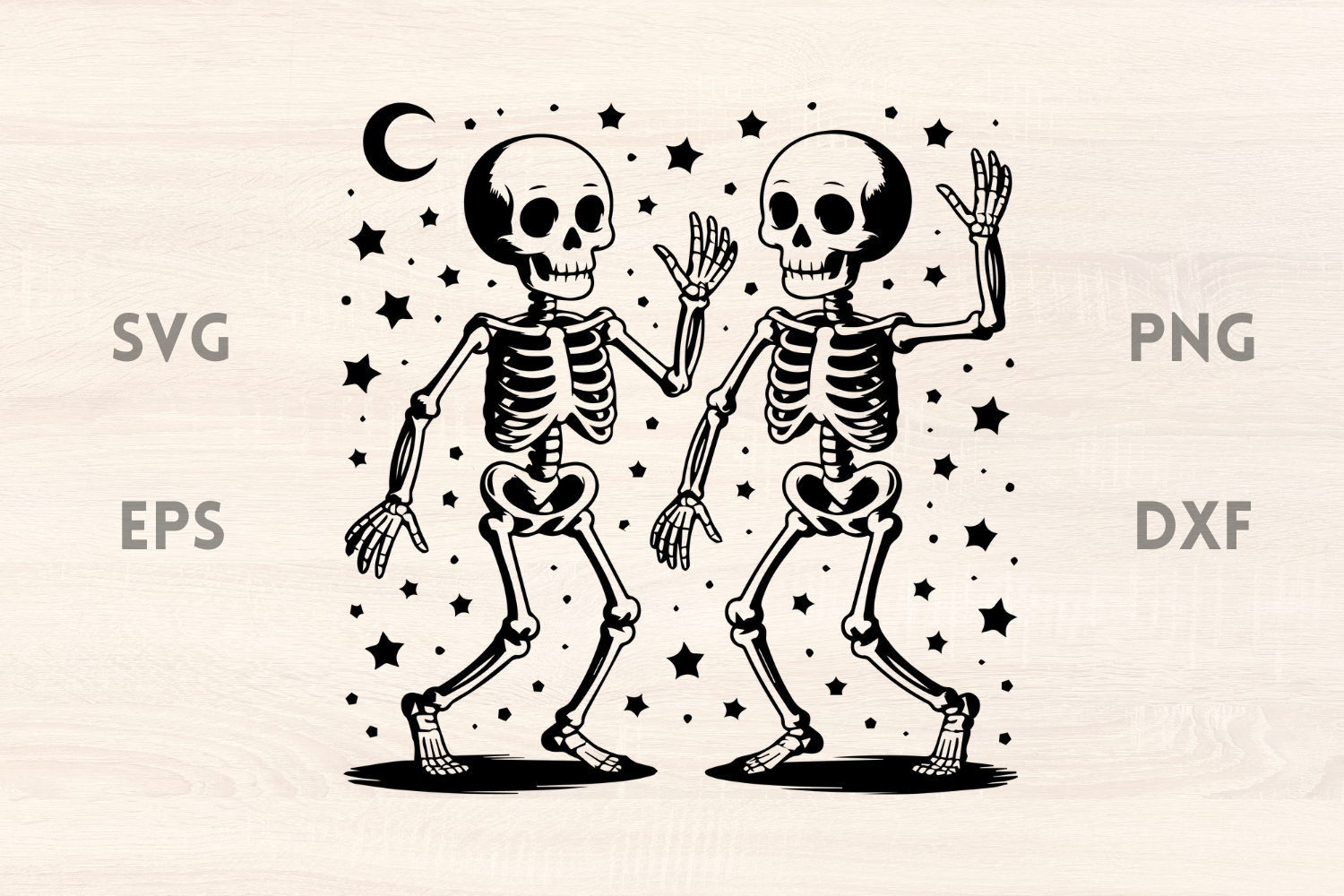 Halloween Party Party Svg Moon Svg Skeleton Svg Cute Halloween Svg Cute Character Moon And Stars Dancing Skeletons Svg Skeleton Party Svg