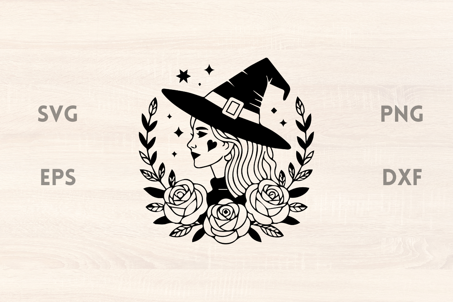 Witch with Heart and Roses SVG is available in EPS, SVG, DXF & PNG format. The cutting points were reduced to a minimum, so the cutting process will be a lot faster.