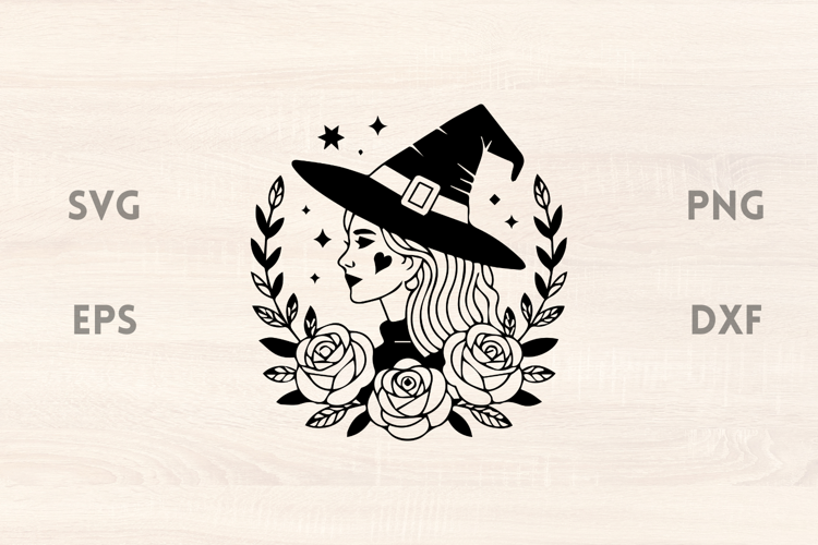 Witch Svg Floral Svg Fantasy Svg Wings Svg Woman Face Svg Rose Wreath Rose Witch With Moon Svg