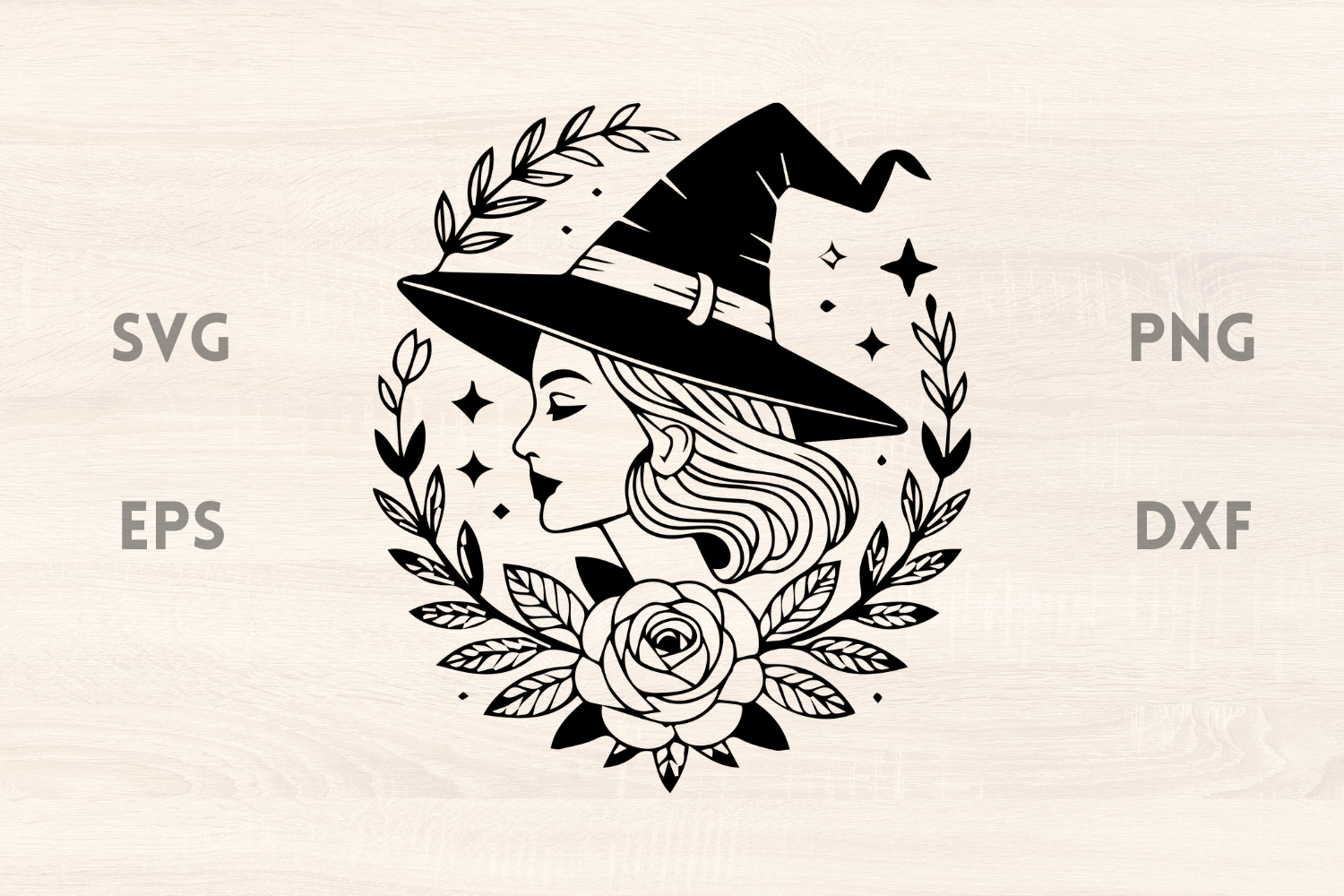 Vintage Witch Portrait with Roses SVG is an whimsical Halloween SVG, perfect for laser cut designs, shirts, hoodies, tote bags, cards or any Halloween decoration