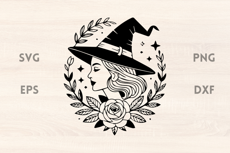 Vintage Witch Portrait with Roses SVG is available in EPS, SVG, DXF & PNG format. The cutting points were reduced to a minimum, so the cutting process will be a lot faster.