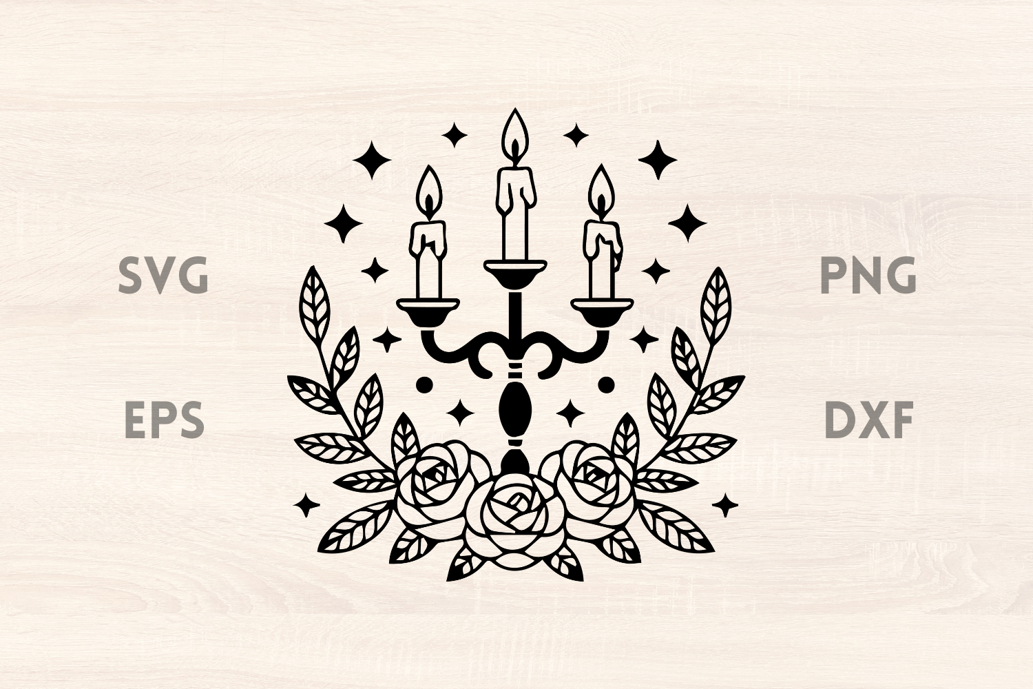 Candle Holder Rose Wreath SVG is an whimsical Halloween SVG, perfect for laser cut designs, shirts, hoodies, tote bags, cards or any Halloween decoration