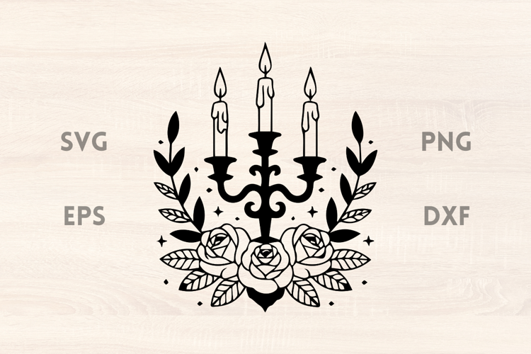 Candle Holder with Roses SVG is an whimsical Halloween SVG, perfect for laser cut designs, shirts, hoodies, tote bags, cards or any Halloween decoration