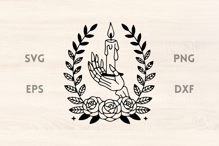 Floral Svg Fantasy Svg Spooky Svg Rose Wreath Candle Svg Skeleton Hand Rose Witch With Moon Svg Wicthcraft